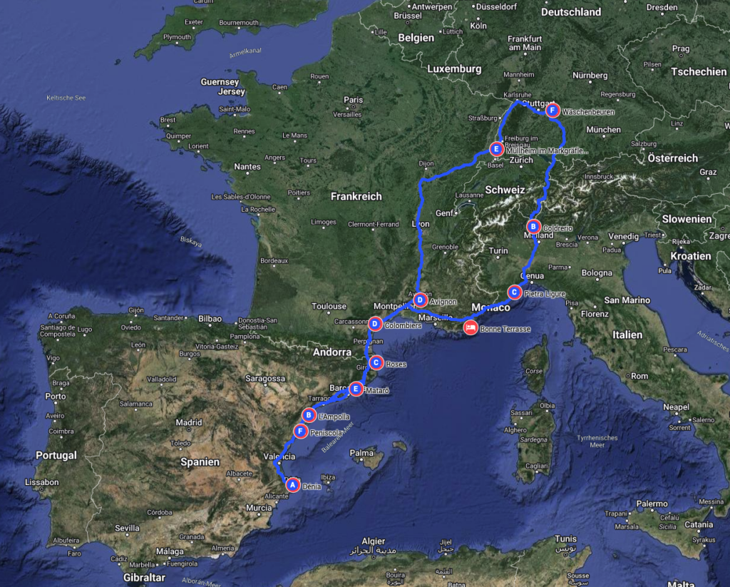 Hier noch eine abschliessende Übersicht unserer Reiseroute. Insgesamt sind wir ca. 4100km gefahren.