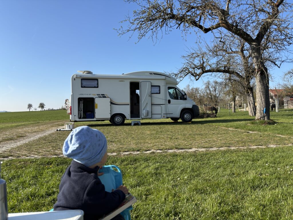 Wir sind ungezwungen bei schönstem Wetter mit dem Womo losgezogen. Nach einem Zwischenstopp in Blaubeuren sind wir nun bei der Schäferei Engel nahe Biberach angekommen.